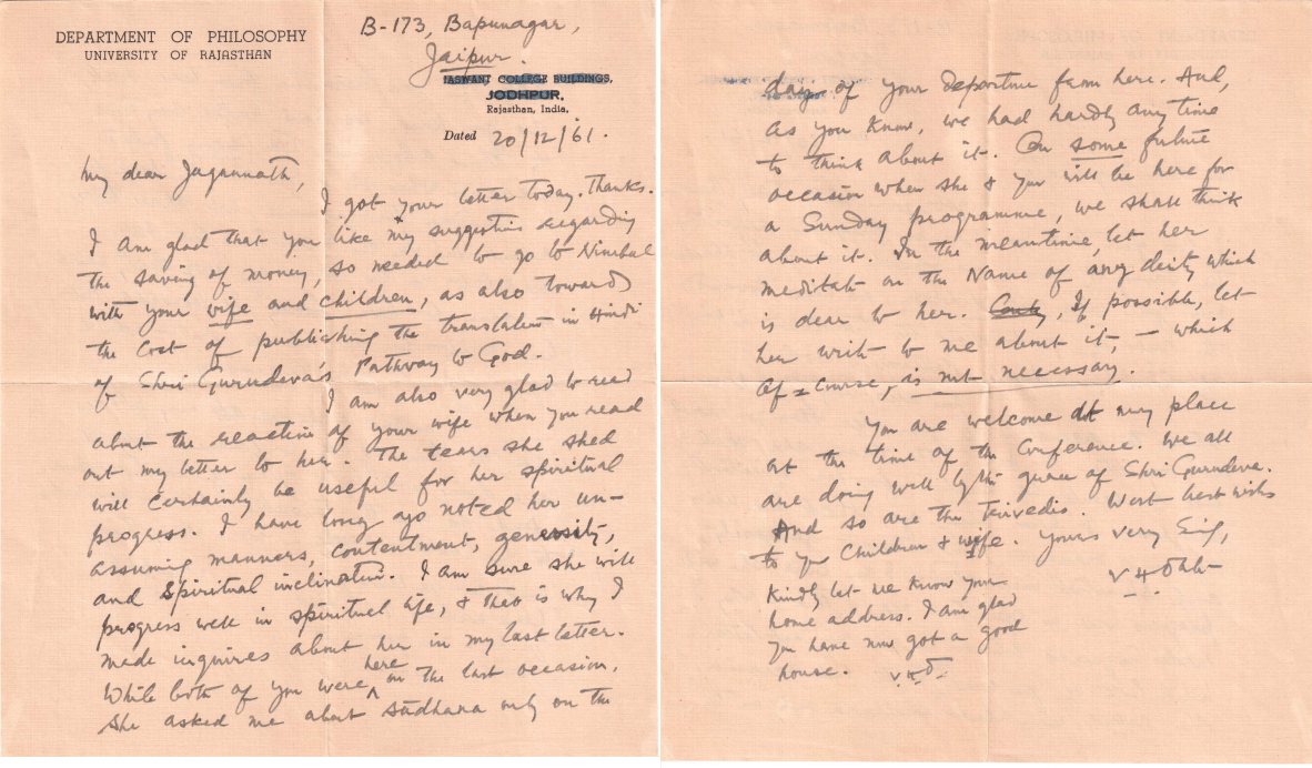 श्री जगन्नाथ जी के जीवन में उनके गुरु डॉ. विनायक हरि दाते साहब के अतिरिक्त किसी और के लिए स्थान ही नहीं था। उनके घर की दीवारों पर छायाचित्र (photos) केवल मात्र गुरु परंपरा के संतों के लगे होते थे, उनकी वाणी डॉ. दाते के ही शब्द बोलती थी और उनके विचारों में भी डॉ. दाते के ही विचार होते थे। दाते साहब की पसंद ही उनकी पसंद थी और जो दाते साहब को पसंद ना हो वो उन्हें पसंद नहीं था। गुरू माता उनके लिए कहती थी कि दाते साहब अगर किसी वाक्य को अधूरा छोड़ दें तो जगन्नाथ जी उसे पूरा कर सकते हैं। यही नहीं कुछ शिष्यों को तो उन्होंने जगन्नाथ जी को महाराज की तरह ही समझने का कहा था।