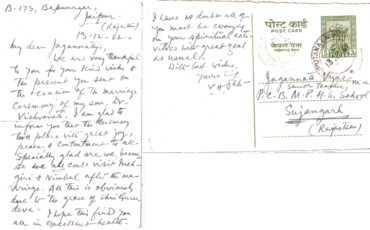 श्री जगन्नाथ व्यास (25.03.1924 – 24.12.2001) एक सरल, विनम्र और दृढ़ संकल्प वाले व्यक्ति थे। 1942 में हाई स्कूल उत्तीर्ण करने के बाद उन्होंने सादगी, अनुशासन और सेवा-भाव पर आधारित जीवन जिया। अपने आदर्शों और गुरु-निष्ठा को उन्होंने हमेशा जीवन में सर्वोपरि रखा, जिससे वे समाज में सम्मानित एवं प्रेरणादायी व्यक्तित्व के रूप में जाने गए।