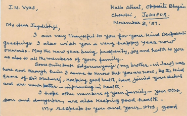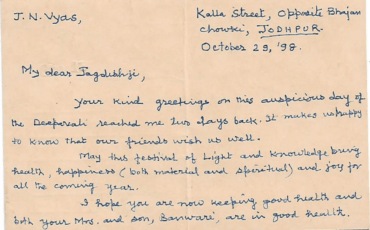 Letters to Jagdish Sharma January 2, 2026 19-11-1999 10-11-1998 24-02-1998 29-10-1998 09-11-1997 27-02-1997 20-12-1996 20-07-1996 07-11-1995 01-01-1995 24-12-1994 24-10-1994 22-09-1994 24-09-1991 10-09-1988 Tags: all letters Jagdish ji Sharma